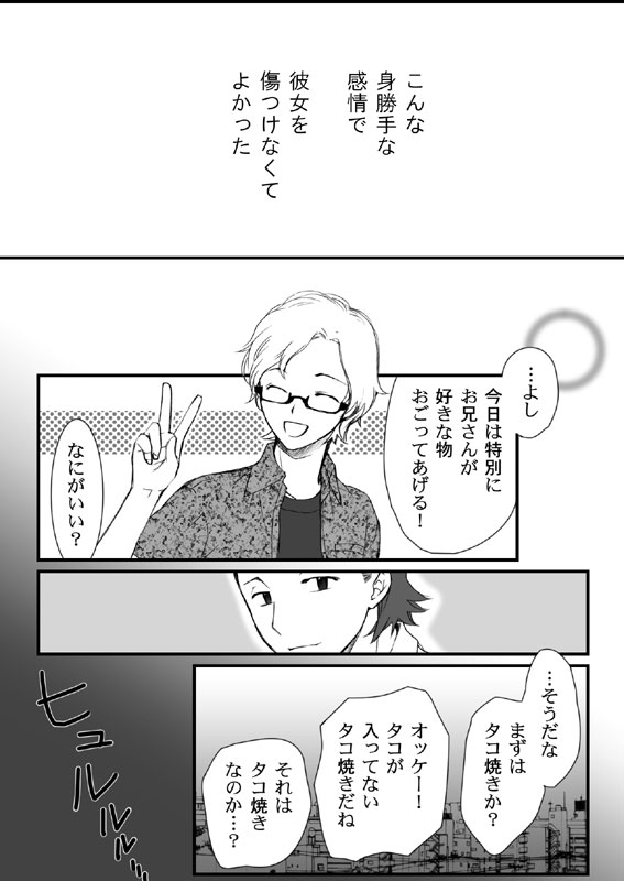 女主人公側からばかり描いてるので、 フォローのつもりだったんですが… いろいろ無駄でした(力不足) 嘘をついたことよりも 苦しいことがある。 と言うことが伝わればいいな、と。 2010.03.14