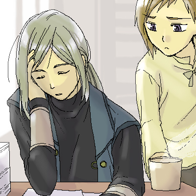 「……また徹夜ですか」 僕の声を合図に、船をこいでいた先生の頭がずり落ちた。 「うっ……ん、あさ……?」 「朝ですよ、おはようございます」 「フィル……おはよう……」 僕を見る目がさだまっていない。 「先生、寝るならちゃんとベッドで寝てください」 「いや、駄目なんだ。今日中になんとか形にしないと」 「……無理しすぎて倒れたら意味ないですよ」 ため息まじりに言うと、飲み物を口にした先生がなぜか笑った。 「どうかしましたか?」 「君が来てくれて助かったなあ、と」 「先生の元の生活が悲惨すぎるんです」 「あはは、ごもっとも。……本当にいつもありがとう」 「お礼を言わないといけないのは僕の方です…… あ、仕事する前にご飯食べてくださいね!では失礼します」 僕は照れてることを悟られないよう、早口で先生に伝えて部屋を出た。 |