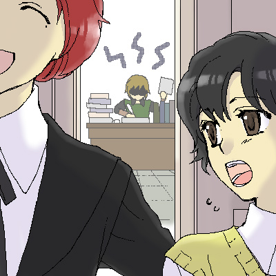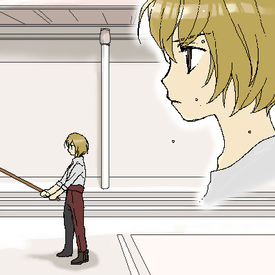 14 ・ マチ いつもの時間にフィルが来ないから、どうしたのかと思ったんだけど。 「仕事たまってて、今日は授業できないって」 彼の部屋に行くと、アーシュが楽しそうに教えてくれた。 奥にいるフィルを見ると、机の上に山積みになった本や書類に埋もれている。 目がすわってる……もしかして昨日の夜からずっと? 「フィル君お仕事頑張ってっ!」 「アーシュ……お前……」 「さーマチ、今日は一日中俺と稽古できるよー」 アーシュはフィルの言葉を無視して、私を部屋から押し出そうとするので、 私はあわてて声を上げた。 「あっフィル!おしごと、がんばってー!」 「 」 フィルが返事をしてくれたみたいだけど、 ドアが閉まってしまって上手く聞き取れなかった。 それから数日、フィルが部屋から出ることはなかった。 ※マチにはアシュレイって言葉は全部アーシュって聞こえる(今のところ) |