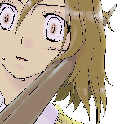 22 ・ マチ ……許さない許さない許さない。 この人は、私の……を傷つけた……! 私はすでに怒りでまわりが見えなくなっていた。 これは私の悪いところ。 夏の大会で嫌というほど後悔したのに押さえきれない。 男が強いことはすぐにわかったけれど、もう後には引けなかった。 アーシュとの稽古で強くなったと過信していたのかもしれない。 でもこれほどの激しい怒りを感じたのははじめてだった。 「甘い」 自分の感情に振り回されはじめていた私に、風を切る音と共に模造刀がかすめた。 頬がヒリヒリしはじめたとき、私の頭上から何かがずるりと落ちた。 |