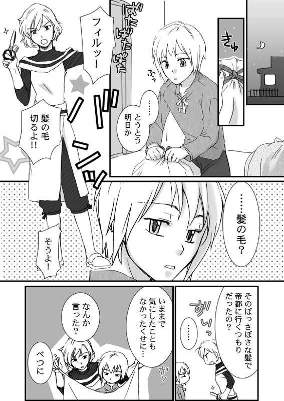 拍手お礼として置いておいたもの。 本編より約10年前、フィルが先生のところへ行く前日のお話です。